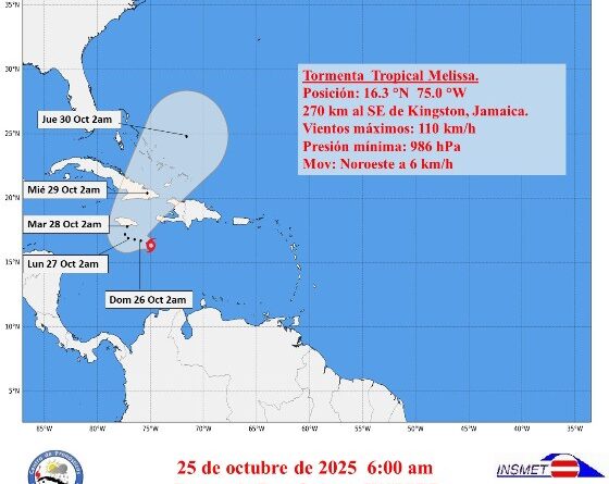 CENTRO DE PRONÓSTICOS, INSMET. Fecha: 25 de octubre de 2025. Hora: 06:00 am. … Melissa se intensifica sobre el Caribe