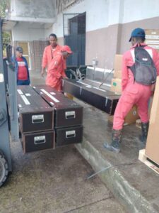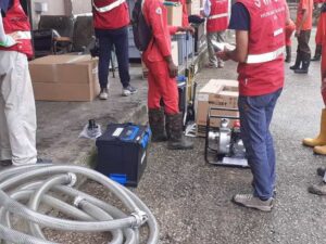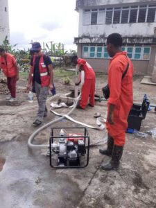 Las acciones consistieron en el desvalije y montaje de accesorios para evacuar las aguas de las cisternas con dos plantas eléctricas con el fin de limpiarlas y, luego, llenarlas con agua potable, así como ubicar el equipo potabilizador.