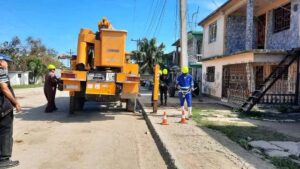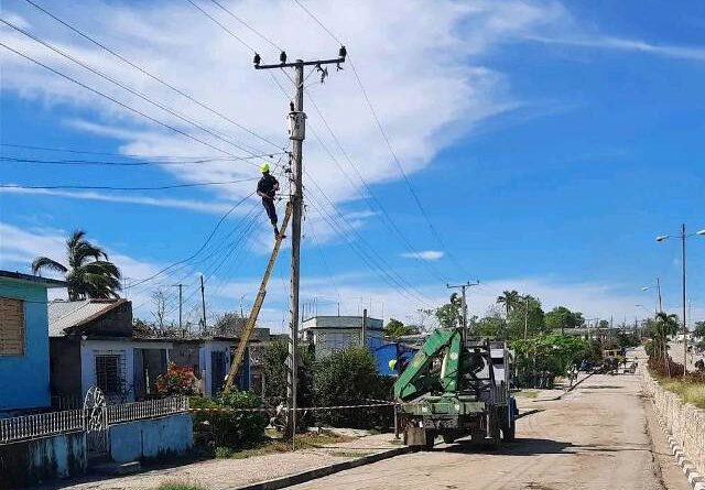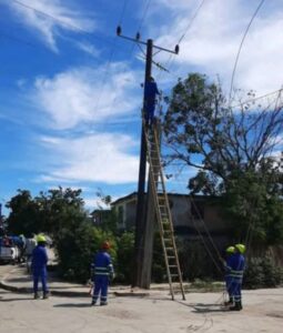 San Luis, Santiago de Cuba, nov. 21, 25.- Trabajadores de la Empresa Eléctrica de este municipio, de conjunto con la Brigada de apoyo del Contingente de Las Tunas, continúan laborando en el restablecimiento del servicio eléctrico en varias comunidades del territorio sanluisero que todavía no cuentan con el servicio desde el paso del Huracán Melissa.
